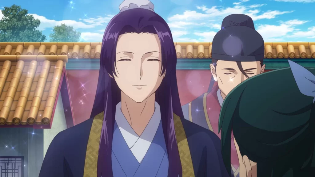 O relacionamento entre Maomao e Jinshi, o misterioso e belo funcionário de alto escalão, também é um ponto alto. Ao invés de se apoiar em clichês românticos fáceis, o anime constrói uma relação baseada na inteligência e na desconfiança mútua, criando uma curiosidade crescente entre ambos e, aos poucos, desenvolvendo seu relacionamento.