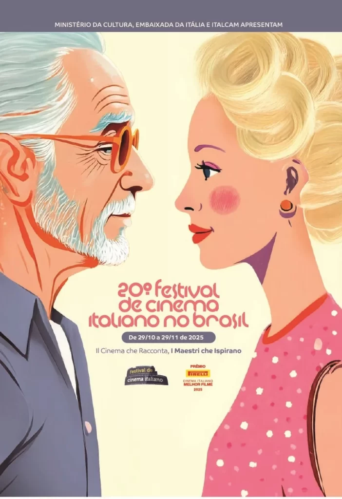 A 20ª edição do Festival de Cinema Italiano no Brasil chega ao Brasil em outubro de 2025 celebrando duas décadas de difusão da cinematografia italiana. O evento, que já faz parte do calendário cultural nacional, acontecerá de 29 de outubro até 29 de novembro, totalmente gratuito e em formato híbrido, presencialmente em todo o Brasil em mais de 100 salas e também com filmes online que podem ser assistidos no site do Festival. O evento é um projeto organizado pela Câmara de Comércio Italiana de São Paulo – ITALCAM, em colaboração com a Embaixada da Itália.